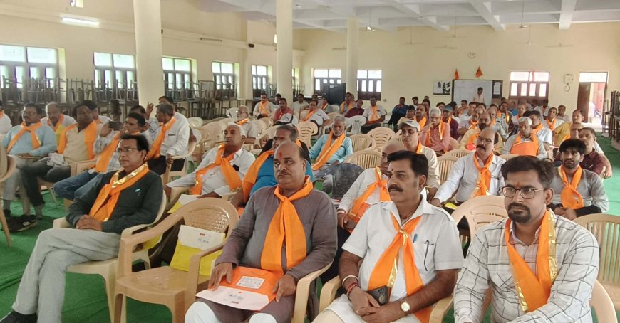 सेठ मुरलीधर मानसिंहका राजकीय बालिका उच्च माध्यमिक विद्यालय भीलवाड़ा में संपन्न हुआ । सम्मेलन का प्रारंभ पंजीयन एवं मां सरस्वती के दीप प्रज्वलन के साथ प्रारंभ हुआ कार्यक्रम में मुख्य अतिथि मेघवाहन सिंह प्रदेश अध्यक्ष, जयंतीलाल जी भारतीय कार्यकारिणी सदस्य बीएमएस , डॉक्टर शंकर लाल माली प्रांत कार्यवाह, प्रभास चौधरी विधि सलाहकार, कैलाश चंद्र शर्मा प्रदेश प्रभारी कर्मचारी महासंघ , दिनेश भट्ट प्रदेश उपाध्यक्ष कर्मचारी महासंघ ,कैलाश चंद सुथार प्रदेश उपाध्यक्ष शिक्षक संघ, रोशन लाल तोतला प्रदेश अध्यक्ष ग्राहक पंचायत ग्राहक पंचायत ,जिला मंत्री भारतीय मजदूर संघ हरिश सुवालका थे । उक्त कार्यक्रम में मंचासिन अतिथियों का उपरणा पहनाकर एवं तिलक लगाकर सम्मान किया गया ।