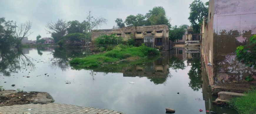 उपस्वास्थ्य केंद्र के बाहर भरा तालाब का पानी: PHC औरविद्यालय को खतरा, ग्रामीण भयभीत