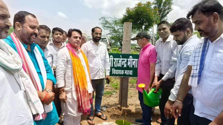 इस दौरान विधायक राजेंद्र मीणा ने कहा कि राजस्थान के मुख्यमंत्री भजनलाल शर्मा के नेतृत्व में राजस्थान सरकार द्वारा मुख्यमंत्री वृक्षारोपण महा अभियान हरियाला राजस्थान एक पेड़ मां के नाम राजस्थानसरकार द्वारा बरसात के इस मौसम में सगन वृक्षारोपण कार्यक्रम चलाया जा रहा हैयह अभियान मातृत्व, प्रकृति और पर्यावरण संरक्षण को समर्पित है। आइए, हम सब मिलकर राजस्थान सरकार के द्वारा चलाए जा रहे हैं मां अभियान के तहत एक पौधा लगाकरइस हरियाली की क्रांति का हिस्सा बनें।