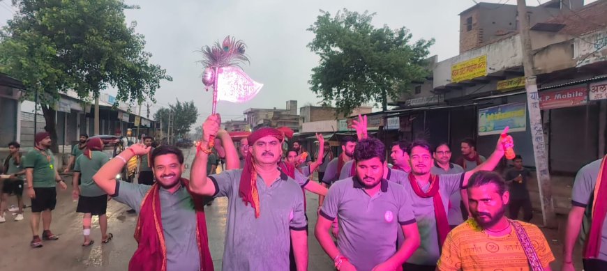 गोविन्दगढ़ से चांदी जी डाक ध्वज यात्रा हुई रवाना:लोगो ने जगह-जगह श्याम भक्तो का किया स्वागत