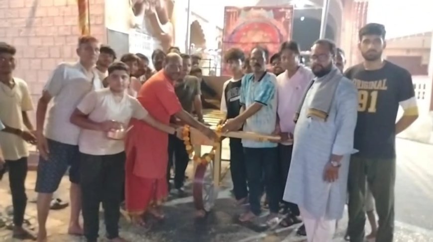 मंदिर के महंत त्रिलोक शर्मा व पंडित अजय शर्मा ने बताया कि गणेशपोल स्थित रिद्धि सिद्धि विनायक गणेश जी के मंदिर पर 27 अगस्त को भरने वाले मेले की तैयारी को पूर्ण कर लिया गया है। रिद्धि सिद्धि विनायक गणेश जी महाराज को विराजमान करने वाले रथ का वैदिक मंत्रोच्चार के साथ पूजन कर ग्यारह दिवसीय गणेश महोत्सव का आगाज हो गया। रथ पूजन कार्यक्रम के दौरान गणेश जी महाराज के जयकारों से वातावरण गुंजायमान हो गया। शर्मा ने बताया कि रथ को आकर्षक रंग बिरंगी रोशनियों व आकर्षक रूप से सजाया जाएगा। इससे पूर्व गणेश जी महाराज को बग्गी में विराजित कर नगर भ्रमण कराया जाता था। इस वर्ष से नवनिर्मित रथ में विराजित कर नगर भ्रमण कराया जाएगा। यह केवल गणेश चतुर्थी को गणेश जी की झांकी में ही काम में लिया जाएगा।