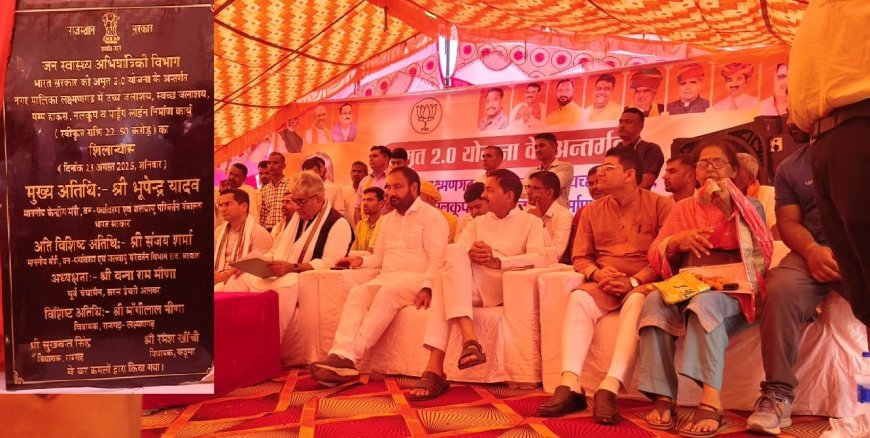 केंद्रीय मंत्री भूपेंद्र यादव ने आज शनिवार को पंचायत समिति परिसर में नगरपालिका लक्ष्मणगढ़ में उच्च जलाशय, स्वच्छ जलाशय, पम्प हाउस, नलकूप और पाइप लाइन निर्माण कार्य का शिलान्यास किया। केंद्रीय मंत्री भूपेंद्र यादव ने समारोह मे संबोधित करते हुए कहा कि अटल जी ने नदियां जोड़ने की बात की।