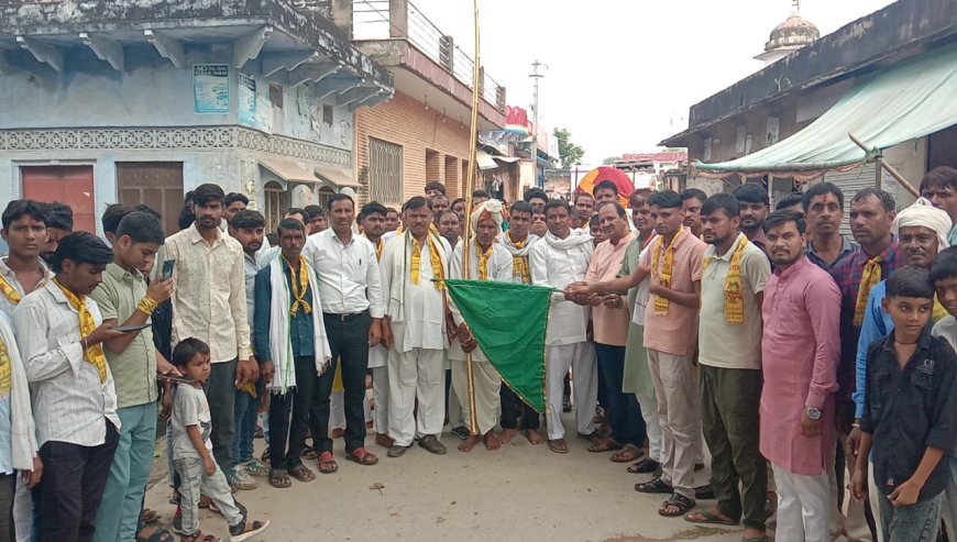 सकट के बांके बिहारी मंदिर से सांवलियाजी धाम के लिए रवाना हुई निशान पदयात्रा