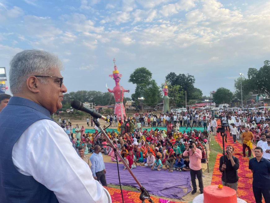 विजयदशमी पर दशहरा मैदान किशनगढ़ बास में केंद्रीय मंत्री भूपेंद्र यादव रहे मुख्य अतिथि ,स्वदेशी अपनाने का दिया संदेश