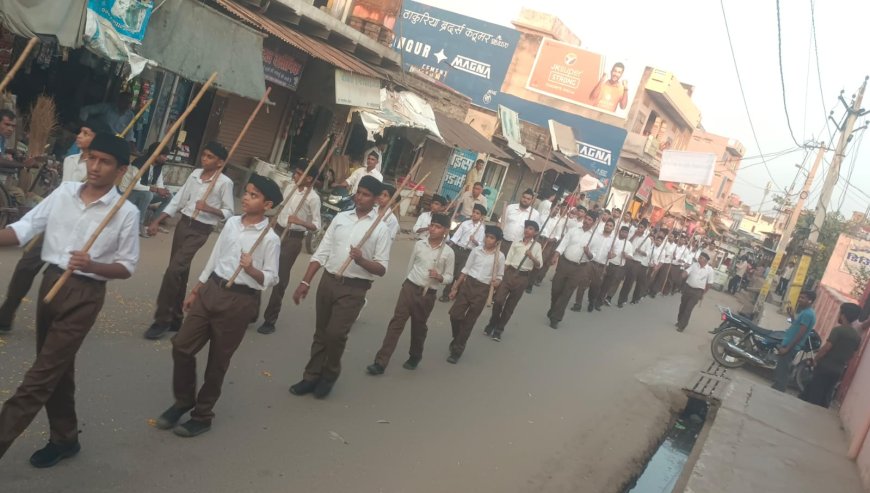 कठूमर में RSS के शताब्दी वर्ष पर पथ संचलनः स्वयंसेवकों ने दंड धारण कर घोष की धुन पर किया मार्च, गूंजे जयघोष