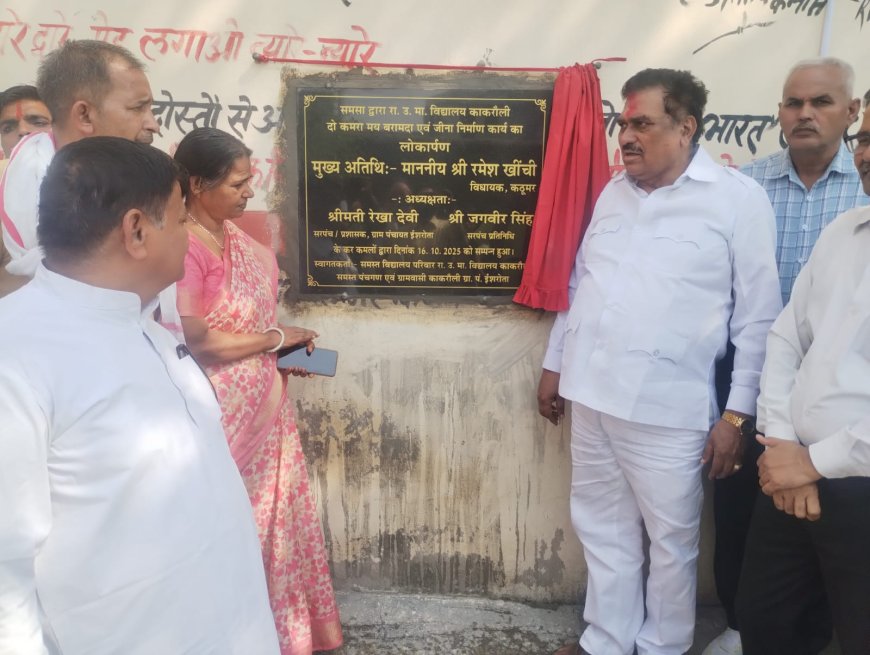 कठूमर/ दिनेश लेखी। राजकीय उच्च माध्यमिक विद्यालय काकरौली में समसा द्वारा निर्मित दो कमरा मय बरामदा एवं जीना निर्माण कार्य का गुरूवार को विधायक रमेश खींची ने लोकार्पण किया।