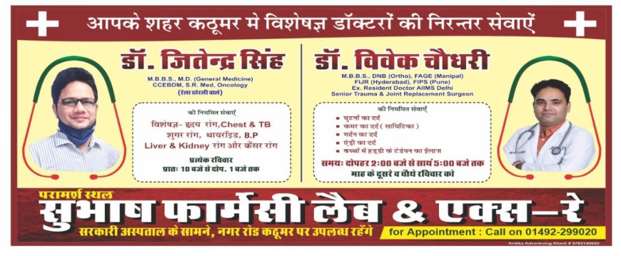 कठूमर मे विशेषज्ञ डॉक्टरों की निरन्तर सेवाएँ सुभाष फार्मेसी पर उपलब्ध