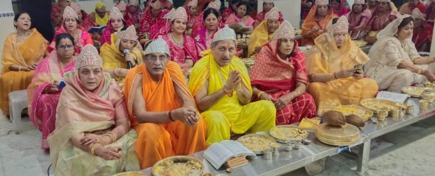 जयपुर (कमलेश जैन) दिगंबर जैन मंदिर प्रबंध समिति गायत्री नगर, महारानी फार्म, जयपुर के तत्वाधान एवं श्री आदिनाथ महिला मंडल द्वारा परम पूज्य मुनि श्री पावन सागर जी महाराज मुनि श्री सुभद्र सागर जी महाराज के पावन सानिध्य में 29 अक्टूबर से चल रहे सिद्धों की आराधना का 5 नवम्बर 2025 प्रातः 7.30 बजे शान्तिधारा सोधर्म इन्द्र इन्द्राणी सुनील अनीता रावका बयाना वाले परिवार द्वारा , सिद्ध चक्र महामंडल विधान मंडल पर सभी इन्द्र इन्द्राणियों ने सिद्धों के गुणों की आराधना करते हुए भक्ति के साथ कुल 2042 अर्घ्य मंडल अर्घ्य चढाये गये तत्पश्चात महायज्ञ नायक उदयभान जैन अनीता बड़जात्या व सभी इन्द्र इन्द्राणियों ने विश्व शांति व जीव कल्याण के लिए महायज्ञ तत्पश्चात श्रीजी की पालकी शोभायात्रा निकाली गई, मन्दिर जी में कलशाभिषेकं होने के साथ यह अनुष्ठान भक्ति व धर्म प्रभावना के साथ सम्पन्न हुआ।