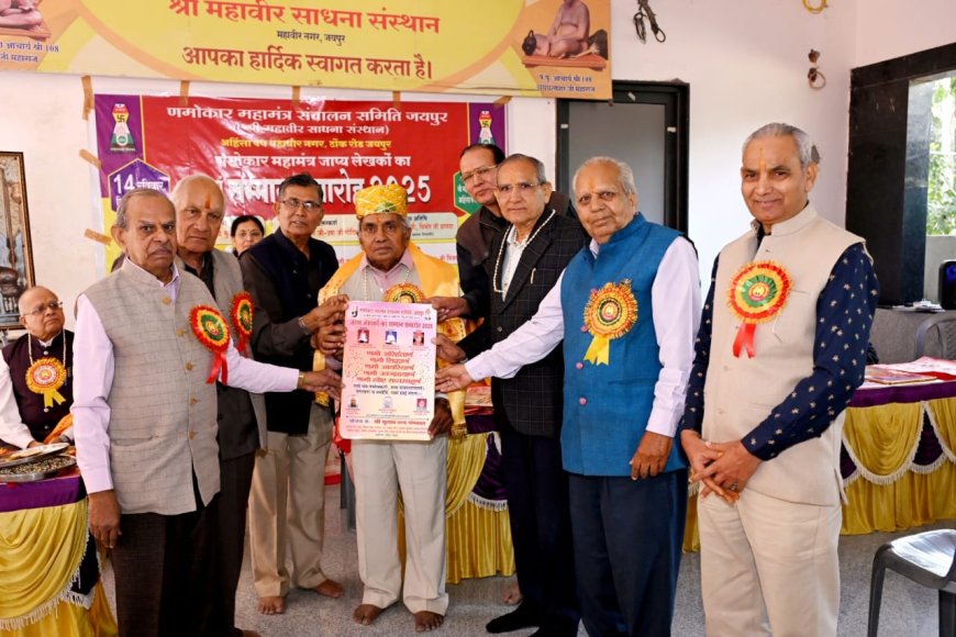 समिति के अध्यक्ष हरक चन्द बडजात्या हमीरपुर वाले- ने बताया कि जाप्य लेखकों का सम्मान समारोह 14 दिसम्बर 25 रविवार प्रातः 9.30 बजे श्री महावीर साधना संस्थान, अहिंसा पथ महावीर नगर में न्यायमूर्ति नरेन्द्र कुमार जैन की अध्यक्षता में हुआ। कार्यक्रम के प्रारंभ में श्रेष्ठी श्री महावीर कुमार जी - उषा गोदिका अपने सुपुत्र - सुपुत्री जो अमेरिका से आए हुए थे, न उन्होंने चित्र अनावरण कर भगवान महावीर के समक्ष दीप प्रज्ज्वलित किया। श्राविका श्रीमती मंजू जैन सेवा वाले, श्रीमती सन्तोष चान्दवाड ने सुन्दर मंगलाचरण कर समारोह की शुरुआत की। उपस्थित सभी जाप्य लेखकों ने सस्वर णमोकार महामंत्र का पाठ किया।