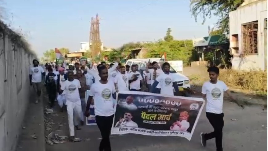 अरावली बचाओ व मनरेगा बचाओ काे लेकर हरिशंकर मेवाड़ा के नेतृत्व में किरवा से खराेकड़ा तक 6 किमी पैदल मार्च निकाला