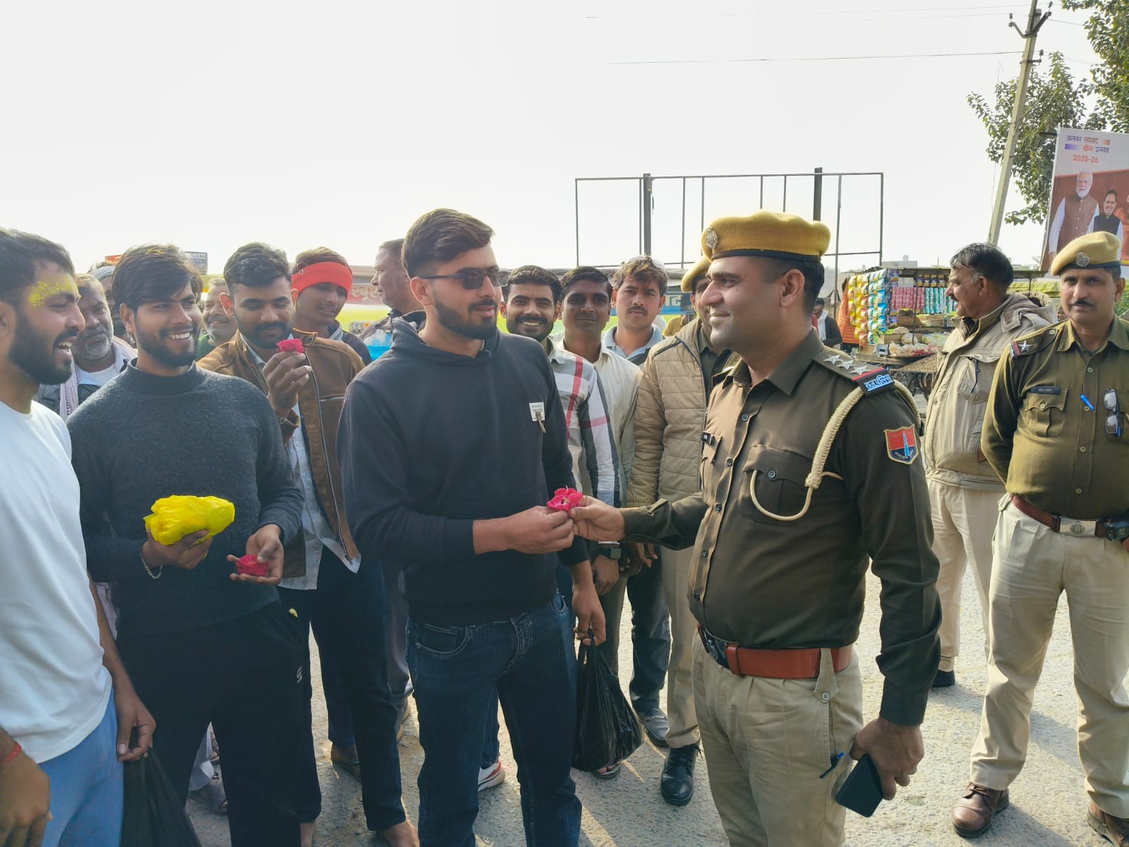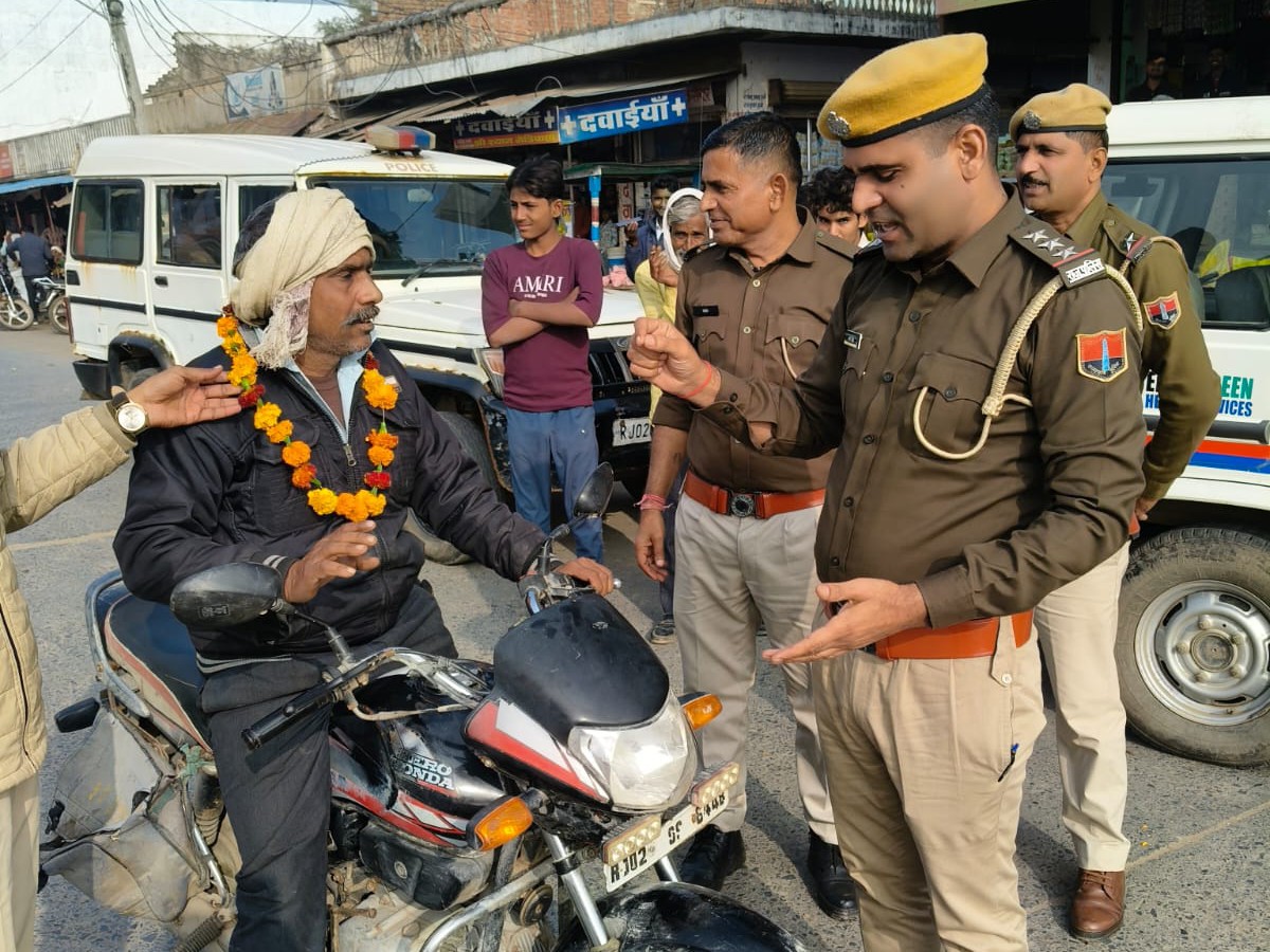 राज्य सरकार और पुलिस मुख्यालय के सड़क सुरक्षा अभियान के तहत थानाधिकारी धर्म सिंह के नेतृत्व में पुलिस टीम ने वाहन चालकों से संवाद किया। अभियान का मकसद चालान का डर पैदा करना नहीं, बल्कि जीवन के प्रति जिम्मेदारी का एहसास कराना था। बिना हेलमेट वाहन चला रहे लोगों को जब पुलिस ने रोका तो वे सहम गए। लेकिन जब उन्हें माला पहनाकर और गुलाब भेंट कर सुरक्षित सफर की सीख दी गई तो उनकी आँखें नम हो गईं।