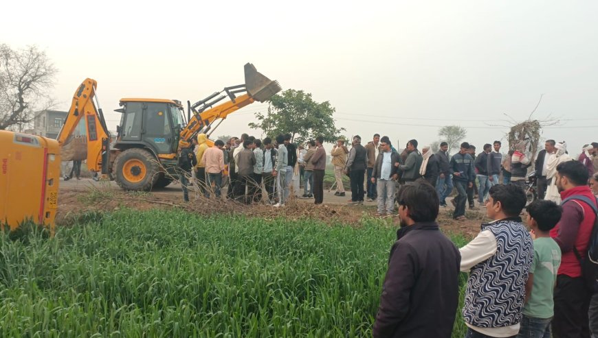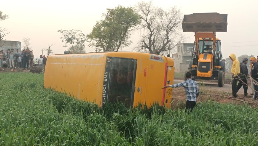 स्कूल की बस पलटी, पांच बच्चे हुए घायल; पुलिस प्रशासन ने मौके पर पहुंच कर बच्चों को कठूमर सीएचसी पहुँचाया