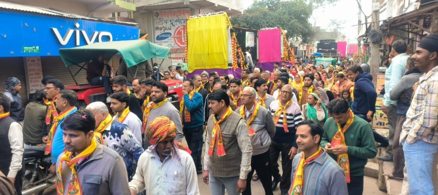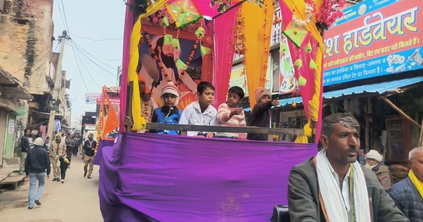 गोविंदगढ़ में संत रविदास-सुंदरदास जयंती मनाई गई: कस्बे में निकाली शोभायात्रा, झांकियां सजाई