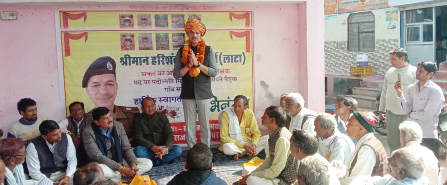 पदोन्नति के बाद पहली बार गांव पहुंचे अतिरिक्त पुलिस अधीक्षक हरिशंकर शर्मा (लाटा) का ग्रामीणों ने डोल नगाड़ों के साथ किया स्वागत