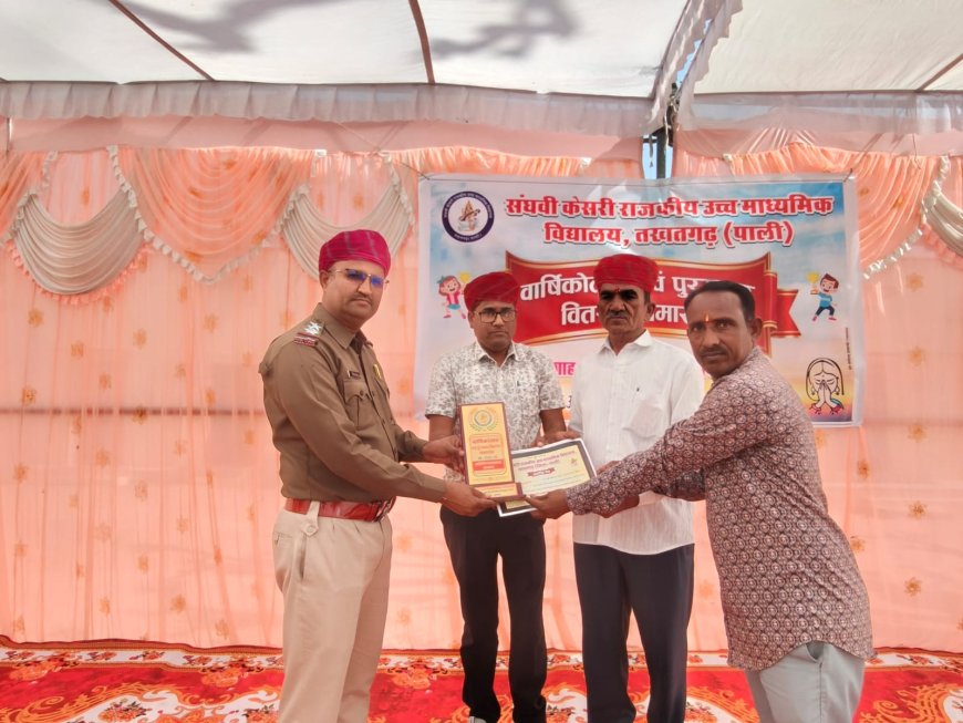 तखतगढ़ (बरकत खान) स्थानीय संघवी केसरी राजकीय उच्च माध्यमिक विद्यालय तखतगढ़ में मंगलवार, 4 फरवरी 2026 को सत्र 2025-26 का वार्षिकोत्सव एवं पुरस्कार वितरण समारोह, भामाशाह सम्मान तथा पूर्व विद्यार्थी सम्मेलन का भव्य आयोजन हर्षोल्लास के साथ संपन्न हुआ। कार्यक्रम में विद्यार्थियों, अभिभावकों, पूर्व छात्रों एवं नगर के गणमान्य नागरिकों की बड़ी संख्या में उपस्थिति रही।