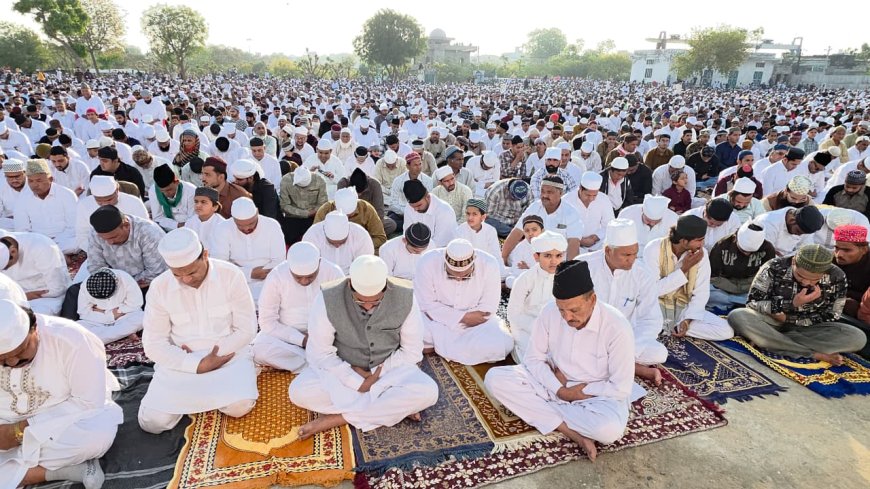 मकराना (मोहम्मद शहजाद)। शनिवार को ईद-उल-फितर का त्यौहार पारंपरिक उल्लास और अकीदत के साथ मनाया गया। रमजान के पाक महीने के समापन पर खुदा का शुक्र अदा करने के लिए हजारों की संख्या में मुस्लिम समाज के लोग ईदगाह मैदान और शहर की विभिन्न मस्जिदों में एकत्रित हुए। सफेद लिबास में सजे छोटे बच्चों से लेकर बुजुर्गों तक के चेहरों पर ईद की रौनक़ साफ झलक रही थी। शहर के ईदगाह मैदान में मुख्य नमाज़ सुबह 7:30 बजे संभल से आए मौलाना मुजतबा हसन द्वारा अदा करवाई गई। नमाज़ से पूर्व मौलाना ने अपनी तकरीर में इंसानियत और मोहब्बत का पैगाम दिया। उन्होंने कहा, ईद का यह पावन पर्व हमें आपसी कटुता भुलाकर भाईचारे के साथ रहने की सीख देता है। नमाज़ के बाद हजारों हाथ एक साथ मुल्क की खुशहाली और कौमी एकता की दुआ के लिए उठे। नमाज़ के बाद सभी ने एक दूसरे से गले मिलकर ईद कि बधाई दी।