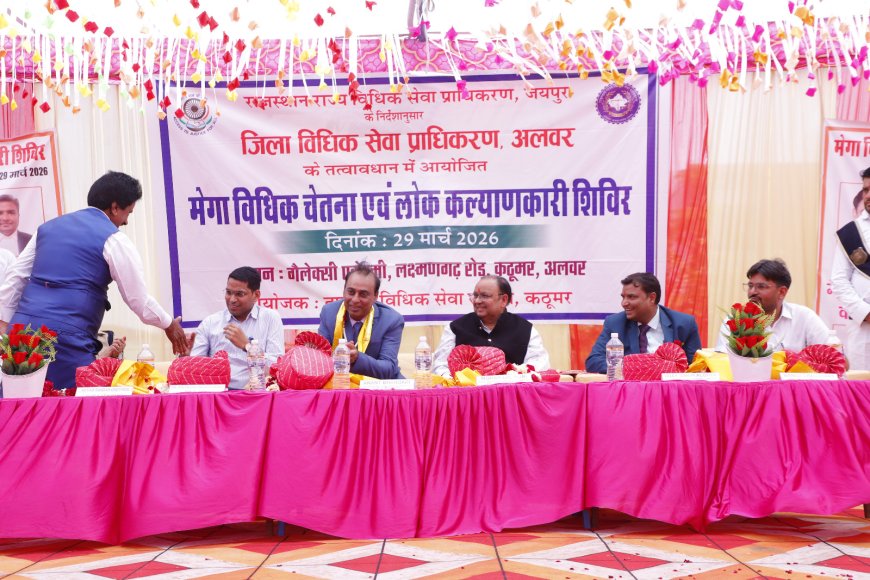कठूमर (दिनेश लेखी) राजस्थान राज्य विधिक सेवा प्राधिकरण, जयपुर के दिशा-निर्देशानुसार एवं जिला विधिक सेवा प्राधिकरण, अलवर के माननीय अध्यक्ष अनंत भंडारी जिला एवं सत्र न्यायाधीश की गरिमामयी अध्यक्षता में रविवार को गैलेक्सी एकेडमी, कठूमर में वृहद “मेगा विधिक चेतना एवं लोक कल्याणकारी शिविर” का भव्य एवं सुव्यवस्थित आयोजन संपन्न हुआ।