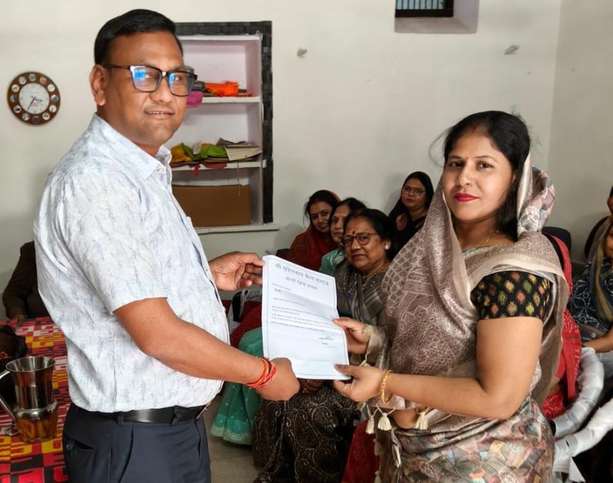 समाज भवन में आयोजित कार्यक्रम के दौरान महिला मण्डल के पदाधिकारियों एवं सदस्यों की उपस्थिति में समाज अध्यक्ष ने सारिका ठाकुरिया को नियुक्ति पत्र प्रदान किया। इस अवसर पर नव-नियुक्त अध्यक्ष का माल्यार्पण कर भव्य स्वागत किया गया।