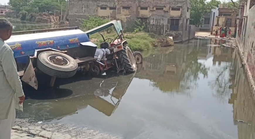 अलवर जिले की गोविंदगढ़ नगरपालिका के रामबास इलाके में प्रशासनिक संवेदनहीनता अब जानलेवा साबित होने लगी है। महात्मा गांधी राजकीय विद्यालय के पास पिछले 7-8 महीनों से जमा गंदा पानी आज एक बड़े हादसे का सबब बनते-बनते रह गया। यहाँ मुख्य रास्ते पर बने 'मिनी जोहड़' में संतुलन बिगड़ने से एक पानी का टैंकर बीच सड़क पर पलट गया। गनीमत रही कि चालक ने समय रहते नीचे कूदकर अपनी जान बचाई, वरना परिणाम घातक हो सकते थे।