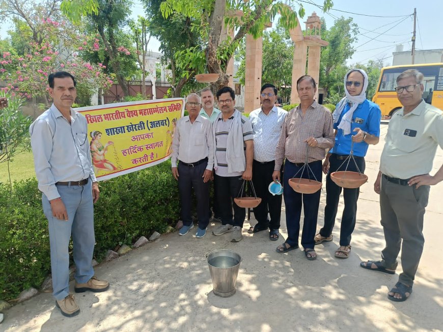 भीषण गर्मी में बेजुबानों के लिए बढ़े हाथ: खेरली में वैश्य महासम्मेलन व विहिप ने लगाए परिंडे